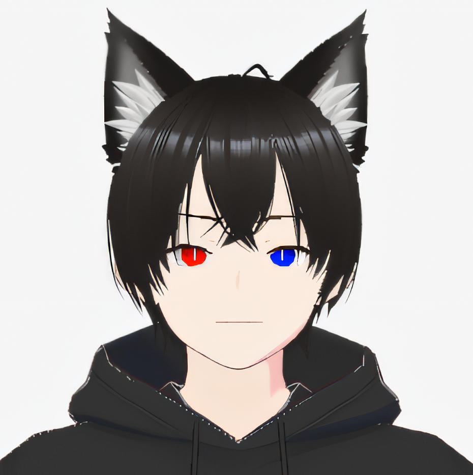 프롬프트: 1boy,male focus, animal ears, heterochromia, red eyes, blue eyes, black hair, black hoodie, white background, animal ear fluff, fox ears, hood down, slit pupils