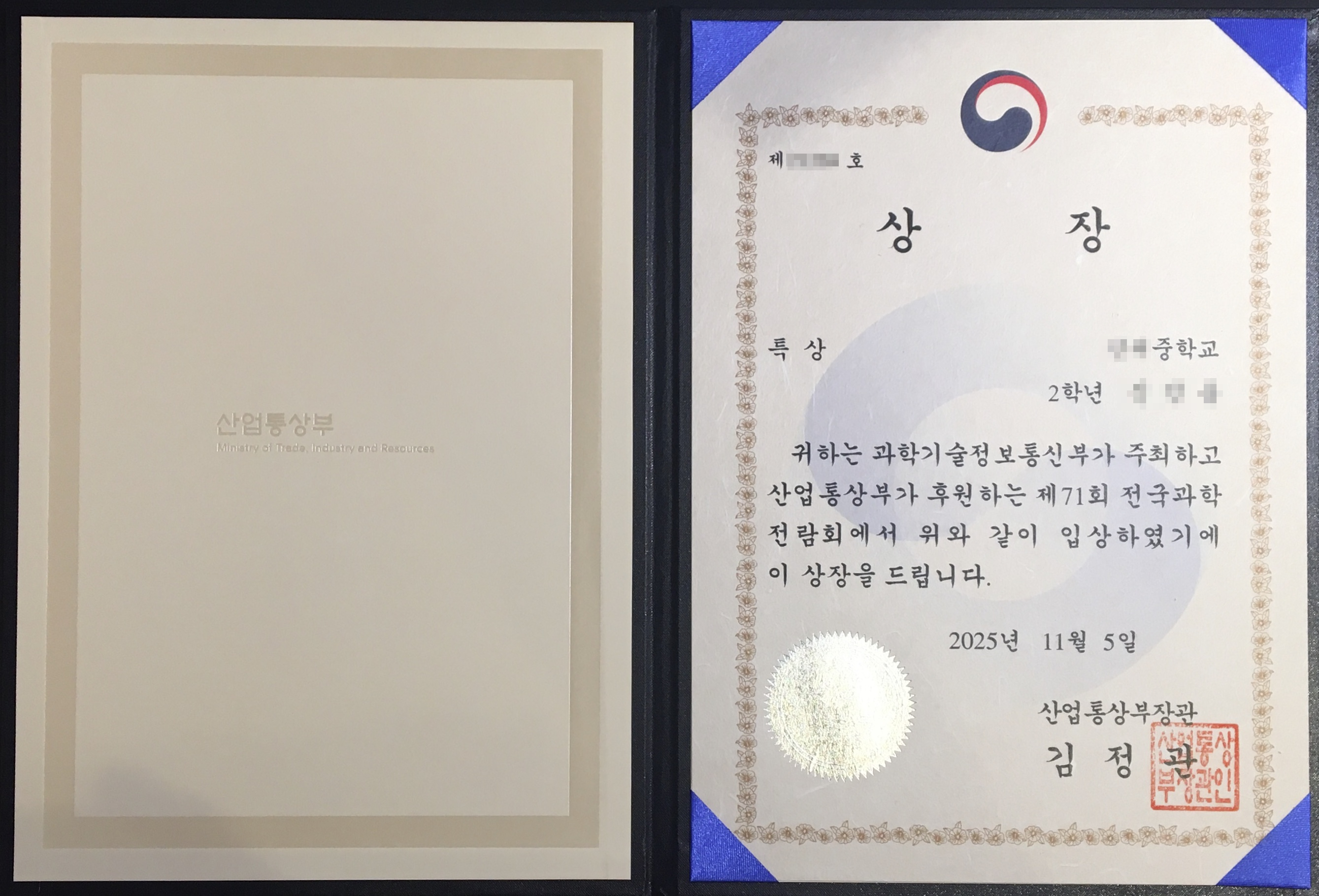 2024년 8월부터 진행한 연구, 오늘 그 상장을 받았다.