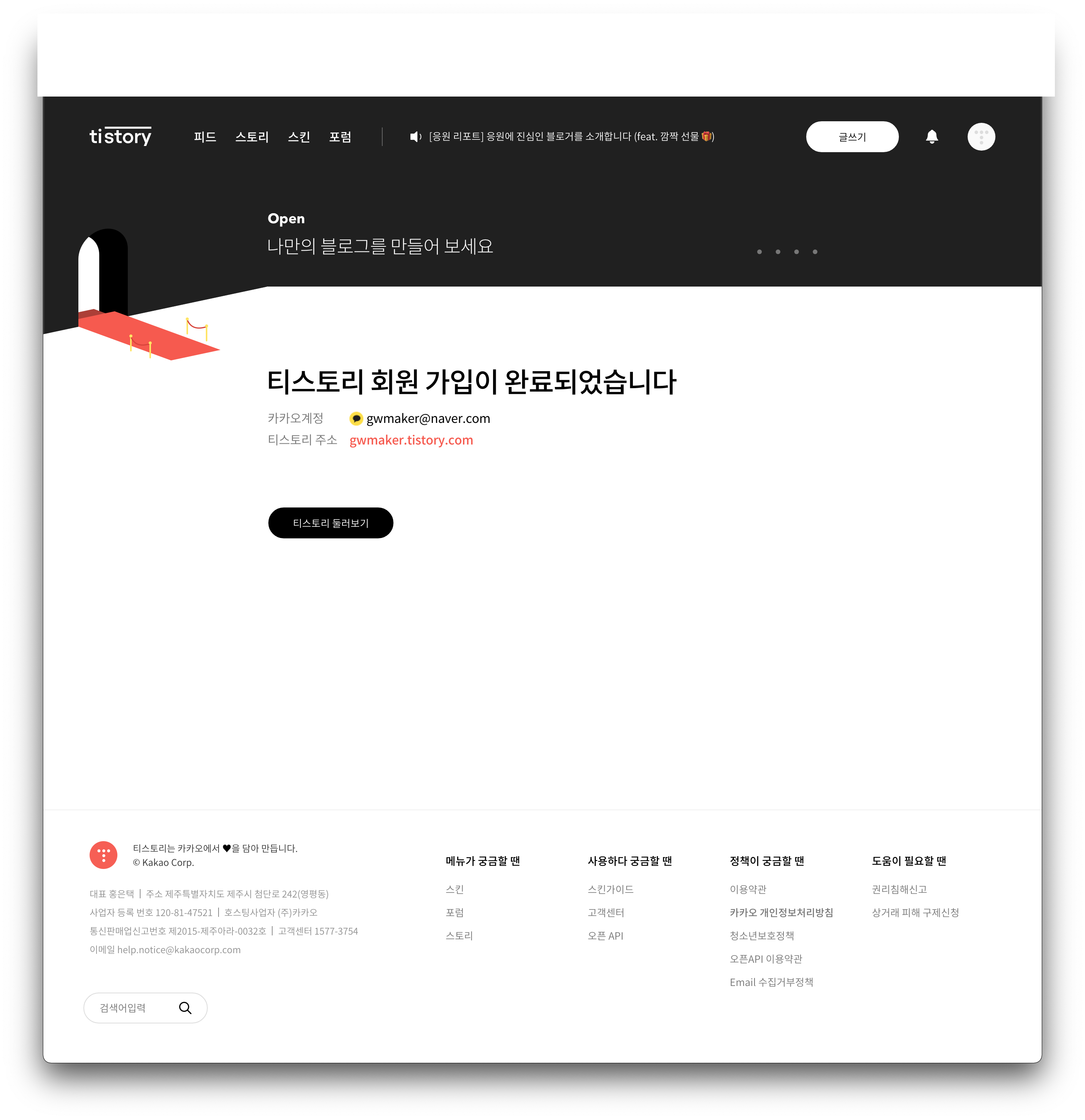 오늘 티스토리에 블로그 채널(?)을 제작했다.