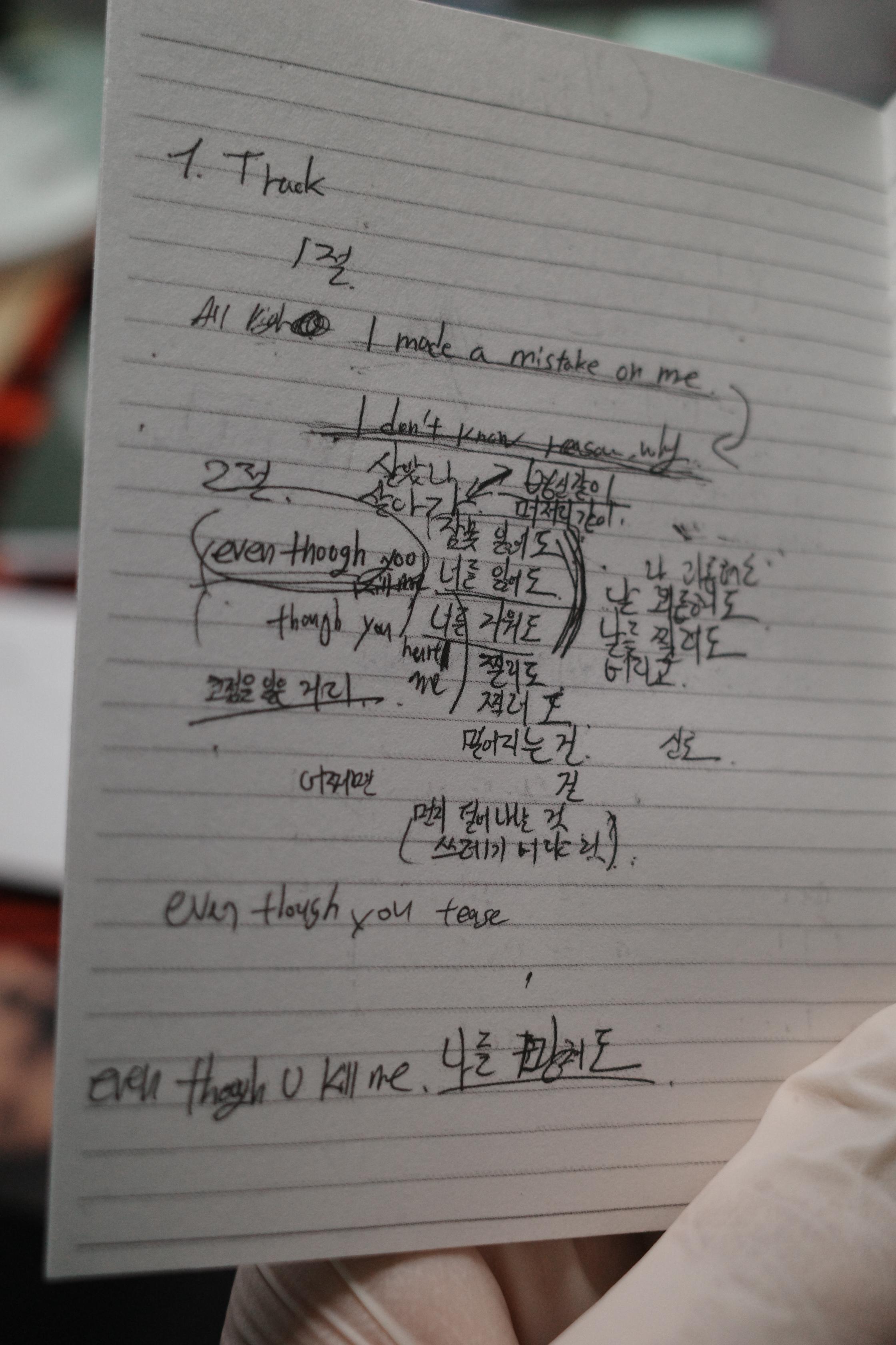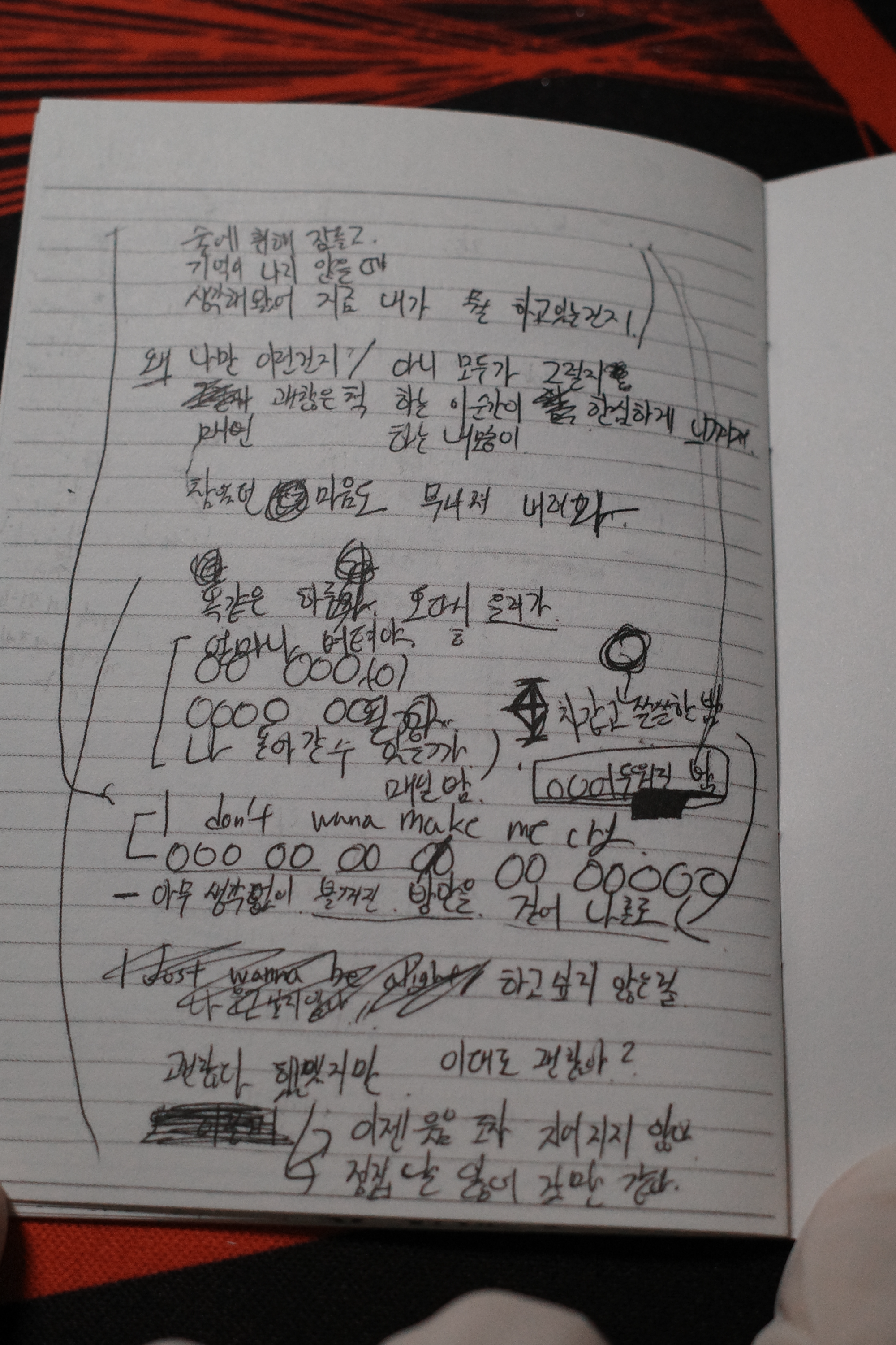근데 자세히 보니 친필이 맞긴 한데 프린트물이다. 그러니까 지민이 썼던 걸 스캔해서 프린트한 거...